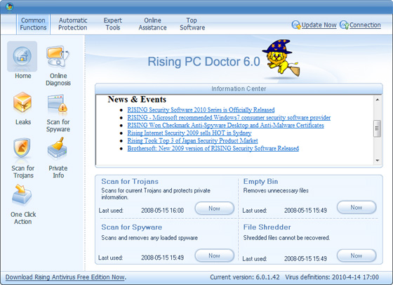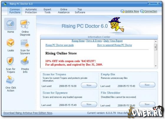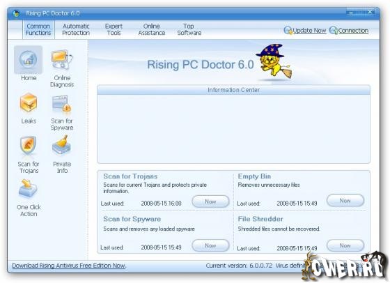 Rising PC Doctor - профессиональная и удобная программа по обеспечению безопасности компьютера. С такими ключевыми функциями как: автоматический анализ вредоносных программ, установка защиты на USB устройства хранения, возможность восстановления Microsoft Internet Explorer и Windows, программа обнаружения и блокировки троянов, защита от вредоносных веб сайтов, защита веб браузера и инструмент блокировки загрузки троянов, Rising PC Doctor значительно повысит вашу защиту от вредоносных программ и других кибер угроз.