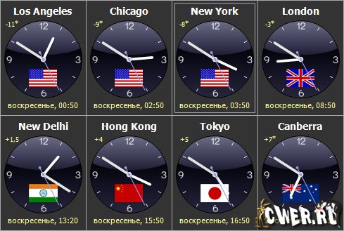 Обновилась программа Sharp World Clock, предназначенная для показа мирового времени. Позволяет установить неограниченное число часов в линию или в виде таблицы. Внешний вид часов может иметь различный дизайн, так же часы могут быть цифровыми или обычными, с круглым циферблатом, часы способны показывать флаг страны и изменяемы в размерах от очень маленьких до полноэкранных. Программой поддерживается множество стилей. Настраиваемый список городов каждой страны мира. Вы сможете добавлять, изменять и редактировать города.