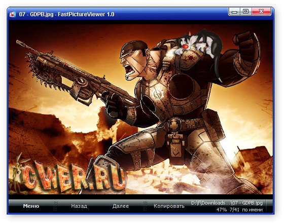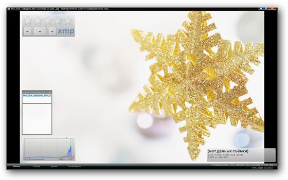 FastPictureViewer - простой в использовании просмотровщик графических файлов. Основным достоинством программы является очень быстрая работа с файлами большого размера, которое заключается в том, что используется не классические методы рендеринга изображений, а считывает их с помощью графического чипа видеокарты.