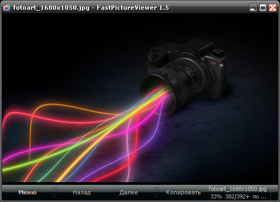 FastPictureViewer - это простая и удобная программа для просмотра графических файлов, основным преимуществом которой является быстрая работа с файлами большого размера. Это достигается считыванием файлов графическим чипом видеокарты, а не классическими методами рендеринга изображений. У программы нет разнообразных примочек в виде редактирования и конвертирования файлов, но главную задачу она выполняет замечательно. Также поддерживается просмотр целых папок и несколько несложных функций.
