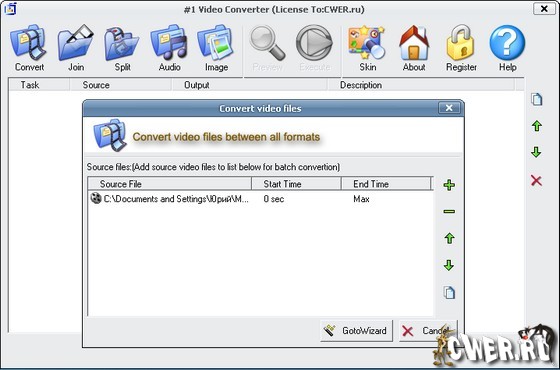 #1 Video Converter - удобная многофункциональная программа для работы с видео. В #1 Video Converter существует несколько основных направлений в работе: конвертирование видео, извлекание аудио дорожки, создание секвенции графических файлов, резка и склейка видеофайлов. #1 Video Converter поддерживаем форматы AVI, MPEG1,MPEG2, VCD, SVCD, DVD, WMV, ASF. Для трёх основных действий программы (конвертирование видео, резка и склейка) предусмотрены пошаговые мастера, которые помогают быстро выбрать все необходимые настройки операции.