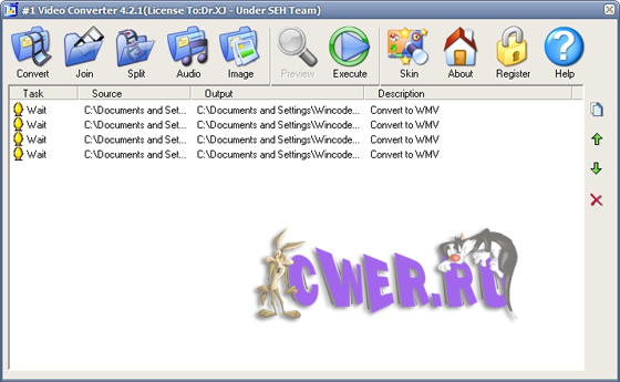 #1 Video Converter - программа для конвертации мультимедиа файлов самых разнообразных форматов между собой. Программа поддерживает преобразование между файлами следующих форматов: AVI, MPEG1,MPEG2, VCD, SVCD, DVD, WMV, ASF. Поддерживает пакетное конвертирование. Помимо самого конвертирования, программа позволяет разрезать мультимедийные файлы на части, склеивать несколько клипов в один файл, извлекать аудио дорожки из видео файлов напрямую в mp3, wma, wav.
