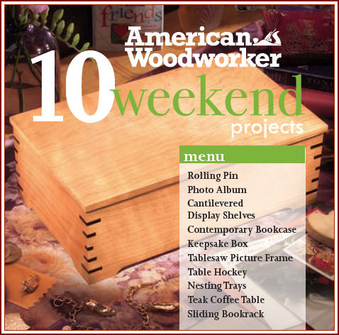 В этой книжке от журнала American Woodworker собраны проекты, в разные годы публиковавшиеся на его страницах. Предлагаются 10 проектов выходного дня. Список их смотрите в полной новости или на обложке, а представление как всегда безукоризнено - чертежи, рисунки, фото и подробные инструкции.