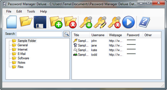 Password Manager Deluxe - программа является менеджером паролей. Позволяет хранить логины и пароли, шифровать файлы, создавать резервные копии баз данных, экспортировать данные в HTML, XML, CSV и текстовые файлы. Созданную базу можно использовать на других ПК. Помимо этого программа включает в себя генератор паролей. Не беспокойтесь о том, что вы снова забыли пароль! Password Manager Deluxe сможет для вас: запомнить все имена пользователя и пароли, с легкостью найти нужный логин, автоматически заходить на веб страницы, используя технологию Drag-and-Drop, защищать ваши пароли и файлы. Ваши данные будут защищены 256 - битным алгоритмом AES/Rijndael шифрования.