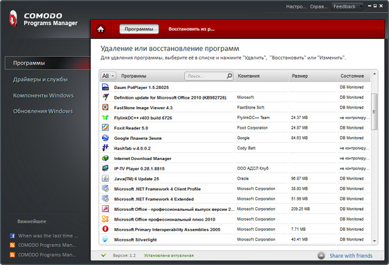 Компания Comodo выпустила новую версию продукта Comodo Programs Manager. Эта полезная утилита для платформы Windows может использоваться для быстрого и аккуратного удаления с жесткого диска установленных программ, драйверов оборудования и компонентов операционной системы.