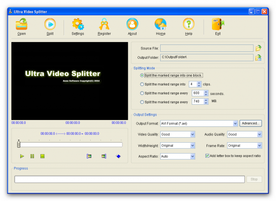 Aone Software Ultra Video Splitter – это профессиональная сервисная программа разделения видео файлов, которая может разделять, обрезать или подрезать видео файлы на маленькие клипы, так что программа является: программой разделения AVI, программой разделения MPEG, программой разделения WMV, программой разделения RM, программой разделения MP4 и т.д. Ultra Video Splitter поддерживает большое количество видео форматов, включая: AVI, Divx, XviD, MPEG, WMV, ASF, RM, MOV, 3GP, MP4 форматы. Используя включенный видео проигрыватель, вы можете разделять видео файлы на маленькие клипы в AVI, DivX, MPEG, VCD, SVCD, DVD, WMV форматах. Ultra Video Splitter предоставляет различные режимы разделения, что позволяет значительно упростить разделение. Вы можете извлекать различные сегменты любого размера, используя режим визуального редактирования, или разделять выбранные файлы на различные кусочки равного размера в автоматическом режиме.
