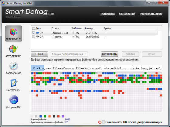Обновилась IObit SmartDefrag - бесплатная программа для дефрагментации жесткого диска. Работает в нескольких режимах: ручном, по расписанию и в автоматическом (дефрагментация происходит в фоновом режиме, когда компьютер простаивает).