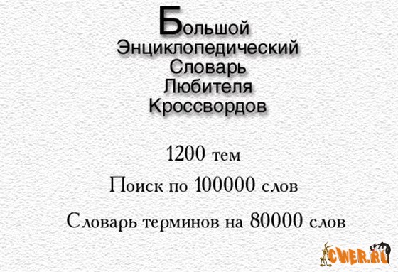 Большой энциклопедический словарь предназначен для любителей, а также профессиональных составителей кроссвордов. В нем содержится более 100 тысяч слов из различных областей знаний: литературы, географии, истории, искусства, медицины, спорта, науки и др.