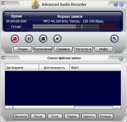 Advanced Audio Recorder - сможет записать любой звук, который проходит через вашу звуковую карту. Например, вы сможете записать звук, который проигрывает какое-то приложение, звук из микрофона, кассеты или CD/DVD плеера, AM/FM/Спутникового радио и т.д. Advanced Audio Recorder - это идеальное решение для записи, редактирования и мастеринга аудио. В программе есть все, чтобы вы смогли записывать профессиональные CD или другие аудио записи. В программу включены профессиональные инструменты для записи, анализа и редактирования аудио. Интерфейс программы был специально создан для того, чтобы пользоваться ею было удобно и просто.