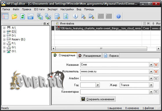 MP3TagEditor - многофункциональный редактор ID3 тагов и имен файлов. Программа поддерживает редактирование обоих версий версий ID3 тага: ID3v1 и ID3v2, также возможно сохранение текста песни в MP3 файле. Можно редактировать информацию как нескольких файлов одновременно (например, альбом), так и отдельных файлов. Каждое поле ID3 тага можно редактировать как в Списке файлов, так и в отдельно открывающемся окне "Информация о файле".