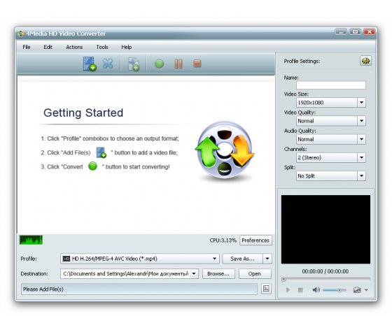 4Media HD Video Converter - это новейшее программное обеспечение для любителей высоко-качественного видео с простым и интуитивно понятным интерфейсом. Конвертер поддерживает кодирование и декодирование всех High-Definition Video HD, включая форматы AVI, H.264/AVC, MKV, AVCHD, HD TS MPEG4, MPEG2 TS HD, WMV HD, HD Quick Time.
