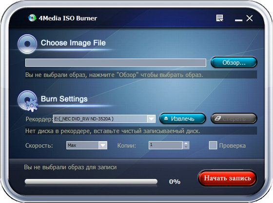 Данная программа может записывать файлы образов в формате ISO на диски CD и DVD. 4Media ISO Burner поддерживает множество форматов, включая BIN/CUE, IMG, MDF, NRG, CDI, B5i, B6i, DMG и другие. 4Media ISO Burner может записывать образы ISO , независимо от того, является ли источником образ диска с данными или образ загрузочного CD или DVD диска. Несмотря на небольшой размер, 4Media ISO Burner способен записывать на различные виды дисков - CD-R, CD-RW, DVD-R, DVD+R, DVD+R DL и DVD-RW, DVD+RW. После записи программа проверяет записанные данные, чтобы гарантировать пригодность к использованию содержания диска.