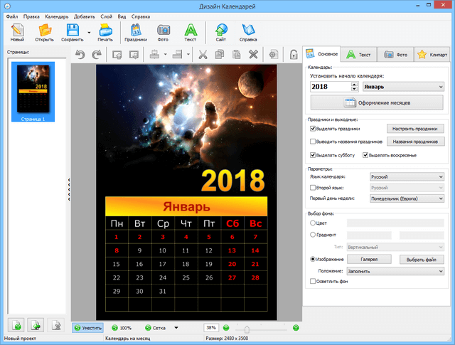 "Дизайн календарей" — очень удобная программа для создания прекрасных календарей с фотографиями на любой год или месяц. Достаточно всего лишь выбрать формат и оформление проекта, добавить фотографии — и получить превосходный календарь. В комплекте присутствует огромный выбор шаблонов высококачественных календарей. Персональный календарь — это не только отличный подарок для друзей и родных, но и прекрасный рекламный продукт для вашего бизнеса.