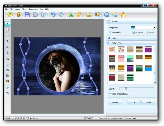 Home Photo Studio - это удобный и мощный редактор фотографий, открывающий неограниченные возможности для творчества. Он позволяет быстро улучшать и редактировать фото, просматривать слайд-шоу, добавлять сотни спецэффектов, создавать коллажи, открытки и календари. Программа отлично подойдёт как для начинающих, так и для опытных пользователей. Home Photo Studio проста в освоении и снабжена подробной справочной системой. Теперь всё необходимое для работы с цифровыми фотографиями есть в одной программе!