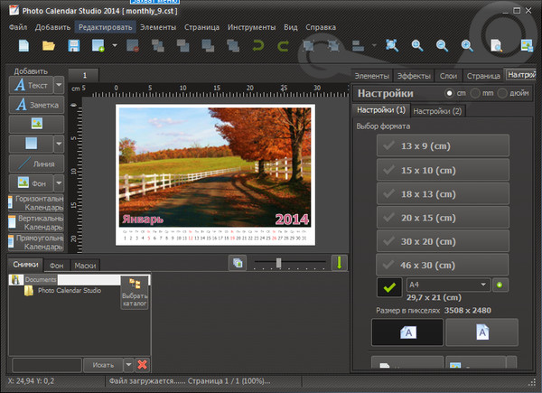 Mojosoft Photo Calendar Studio - программа для дизайна и печати календарей с собственными фото. Программа включает в себя десятки готовых вариантов дизайна календарей, которые можно быстро и легко настроить по своему вкусу. Вы можете изменить любой элемент календаря или добавить свои собственные новые объекты, такие как изображения и субтитры. Вы также можете создавать свои собственные композиции. Это может быть сделано благодаря инструментам, которые позволяют добавлять различные элементы, такие как фигуры, графические фрагменты и надписи.