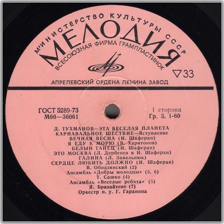 Давид Тухманов выпустил в 1973 году второй «тематический» диск — «Эта весёлая планета», составленный из песен, взятых из одноимённого фильма.