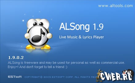 Бесплатный проигрыватель музыкальных файлов форматов MP3, OGG, WAV, APE, FLAC, CD. ALSong был номинирован на награду "Лучшая звуковая программа" 2007 года (Best Sound Program in SIA Awards 2007). Плеер ALSong позволяет читать слова песни, синхронно со звучанием. В базе программы более миллиона текстов песен и ALSong способен автоматически распознавать музыку и связывать ее с нужными словами...