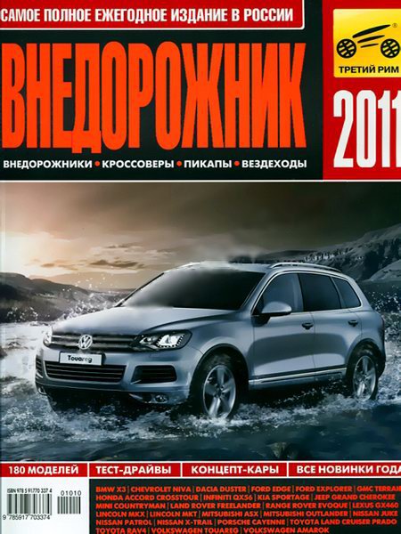 Красочное информационно-справочное ежегодное издание, ориентированное на широкий круг читателей цветной - иллюстрированный автокаталог внедорожных автомобилей 2011. Содержит подробные описания автомобилей повышенной проходимости («внедорожников»), пикапов и других вездеходов, продаваемых на отечественном рынке. Также издание содержит статьи по истории, обзоры новинок и концептуальных автомобилей, таблицы технических данных.