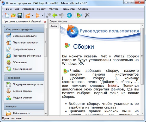 Advanced Installer - программное обеспечение с помощью которого разработчики и системные администраторы смогут без труда создавать инсталляционные пакеты в формате MSI. Программа работает под управлением ОС Windows 2000/XP/Vista, а создаваемые с ее помощью пакеты могут использоваться для развертывания приложений на платформах Microsoft Windows 9x/ME/NT/2k/XP/Vista/7.