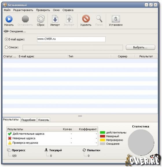 eMail Verifier - программа позволяет сэкономить ваше время и деньги, если вы коммерческая или некоммерческая организация, которая иногда рассылает новостные бюллетени своим клиентам или членам и которой необходимо поддерживать чистоту списка e-mail адресов для рассылки. Программа работает по тому же принципу, что и почтовая система ISP. Она извлекает электронные адреса с Сервера Доменных Имен (DNS) и пытается соединиться с SMTP-сервером, симулируя отправку сообщения. На самом деле, сообщение не отправляется, программа разрывает соединение, как только сервер сообщает, существует ли данные e-mail адрес. Программа является очень эффективным средством обработки уведомлений об ошибках доставки. Приложение проверяет каждый адрес из данного листа рассылки, что позволяет вам обнаружить до 90% «плохих» адресов. Обладает многоязычным интерфейсом с поддержкой русского языка.