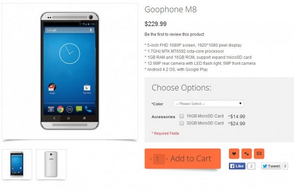 Копия нового флагманского смартфона компании HTC, официальный анонс которого запланирован только на 25 марта текущего года, появилась в продаже на сайте китайской компании Goophone. Стоимость гаджета составляет 229,99 доллара.