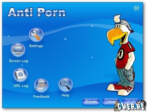 Anti-Porn блокирует просмотр порно сайтов. Деинсталировать или деактивировать можно только зная пароль. Программа хорошо себя зарекомендовала, подходит для руководителей и отцов семейств, ибо это - оптимальное решение для поднятия производительности сотрудников, а родители не будут беспокоится что их чадо проводит в интернете время за просмотром порно.