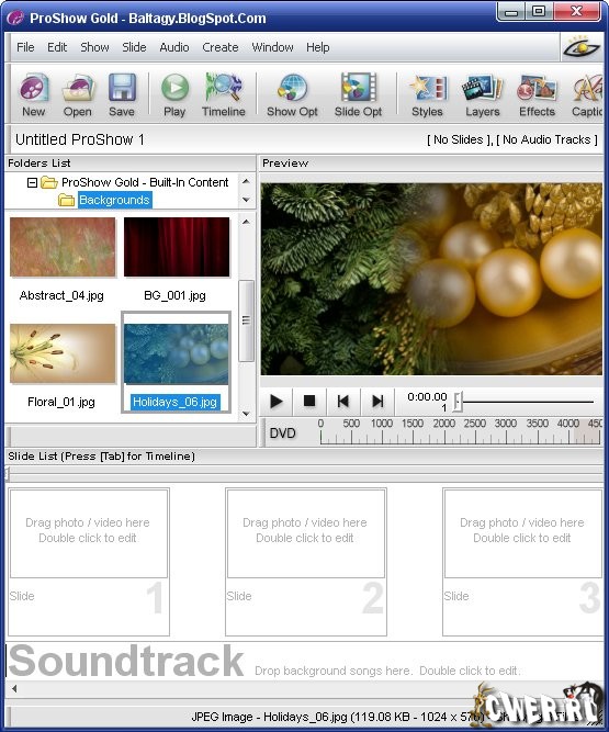 ProShow Gold - программа для профессионального создания слайдшоу презентаций. Утилита поддерживает работу со слоями и дает возможность использовать неограниченное число слоев для каждого слайда. Программа поддерживает прозрачность для файлов PSD, PNG, TIFF и GIF, дает возможность использовать маски слоя, эффекты перехода, градиентную заливку или заливку цветом. Фотографии, из которых состоит презентация, можно редактировать, применяя к ним такие инструменты, как повышение четкости, изменение контрастности и насыщенности цветов. Презентация может содержать подписи, в том числе и анимированные, фоновую музыку. Готовый проект может быть сохранен в один из 14 форматов, в том числе в HD Video, Flash и QuickTime. В отличии от версии Producer данной программы, Gold-версия не имеет возможностей, ориентированных на бизнес, но отлично подойдет для домашнего использования.