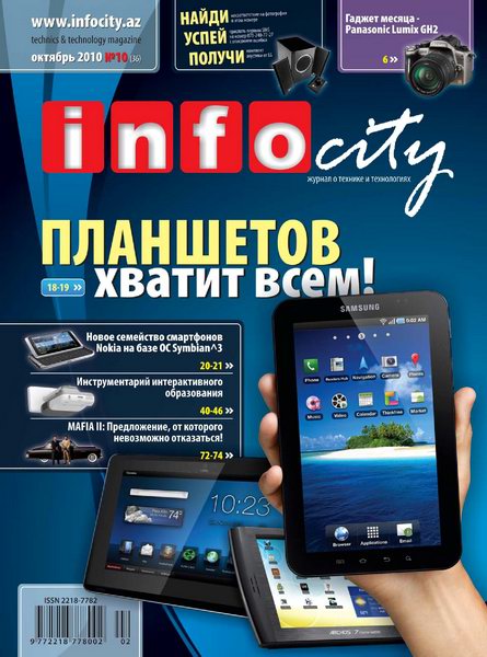 Ежемесячный журнал о компьютерной технике и технологиях. На страницах издания представлена информация о компьютерах, мобильной технике и технологиях, новинках программного обеспечения, электронной игровой индустрии. Журнал InfoCity будет полезен как специалистам в области информационных технологий так и широким массам компьютерных пользователей.