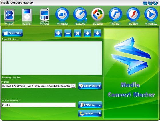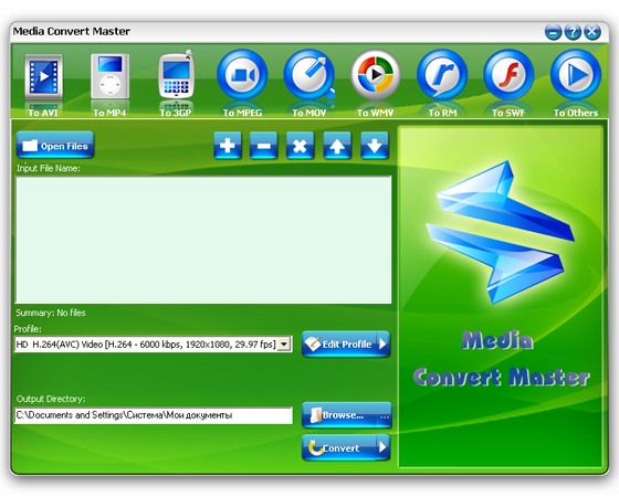 Media Convert Master - профессиональный аудио/видео конвертер, конвертирует ваши аудио и видео файлы из одного формата в другой. Поддерживается мультиформатное конвертирование, в частности AVI, MP4, 3GP, MPEG, MOV, WMV, RM, SWF, AAC, AC3, MP2, MP3, AMR, WAV, VOB и ASF. Экстремально профессиональное конвертирование с наиболее высоким качеством и скоростью! Благодаря простоте в управлении программа позволяет пользователю наслаждаться процессом конвертирования файлов.