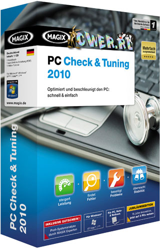 MAGIX PC Check & Tuning 2010 является всеобъемлющим программным решением для интеллектуального тестирования, обслуживания и ускорения ПК и ноутбуков под управлением Windows XP, Vista и Windows 7.