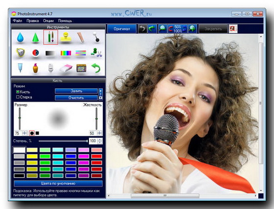 PhotoInstrument - легкий редактор для обработки портретов. От очистки кожи до придания ей гламурного вида "глянцевых журналов", инструменты для ретуширования, удаления красных глаз, сглаживания морщин, увеличения чёткости, коррекции цвета и многого другого, для приданию портрету совершенного вида и желаемой привлекательности – всё это вы получите, скачав приложение на cwer.ws.
