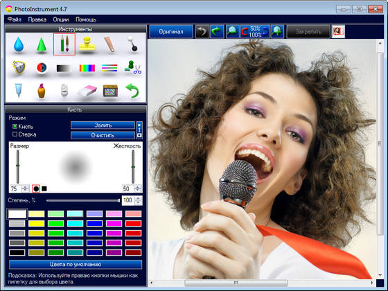 Photoinstrument- великолепный редактор для обработки цифровых фотографий, предназначенный в первую очередь для обработки портретных изображений. Photoinstrument предлагает громадное количество интуитивно понятных инструментов (удаление красных глаз, сглаживание морщин, увеличение чёткости, коррекция цвета и другое) для придания портрету "гламурного" качества.