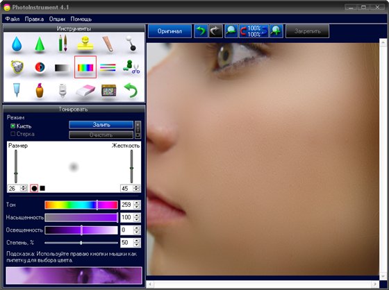 PhotoInstrument - легкий редактор для обработки портретов цифровых фотографий. От Очистителя кожи до придания ему гламурного вида "глянцевых журналов", попутно включая инструменты для: ретуширования, удаления красных глаз, сглаживания морщин, увеличения чёткости, коррекции цвета и многого чего еще, для приданию портрету совершенного вида и желаемой привлекательности.