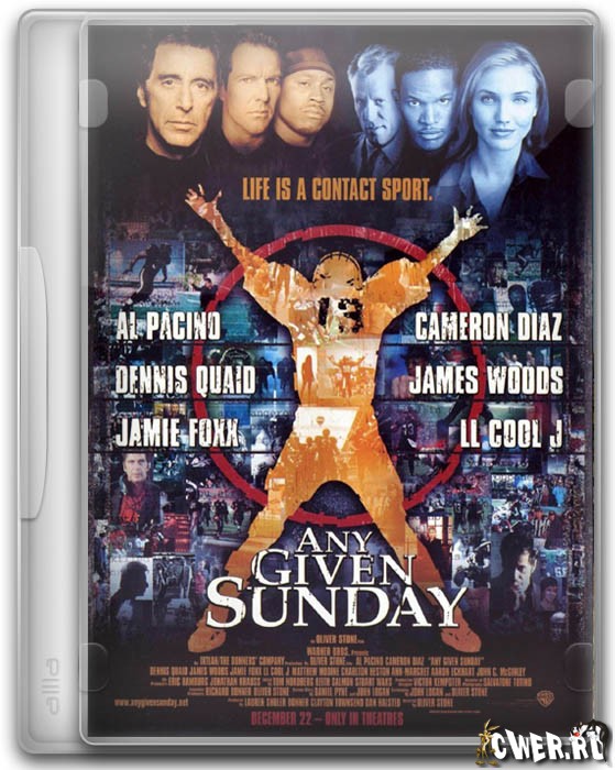 Страстная и захватывающая "песнь" об американском футболе, снятая в бешеном темпе и со свойственной Оливеру Стоуну зрелищностью. Игроков этой жестокой игры он сравнивает с современными гладиаторами, подчеркивая сходство эпизодом соревнования на колесницах из фильма "Бен Гур". Сам Чарлтон Хестон, исполнивший заглавную роль в этом фильме 1959 года, появляется на экране в небольшой сцене. Я думаю, что даже те, кто совершенно не знаком с игрой и кому не нравятся фильмы о спорте, с удовольствием посмотрят эту картину. Стареющий тренер (Пачино), стареющий куотербэк (Куэйд), имеющий все шансы стать инвалидом, молодой, думающий по-новому, куотербэк (Фокс), молодая владелица команды (Диаз), считающая спорт просто бизнесом, и собственно футбольная команда "Акул" из Майями — вот участники нехитрой интриги фильма. Но настоящий герой картины — сама игра, снятая просто потрясающе.