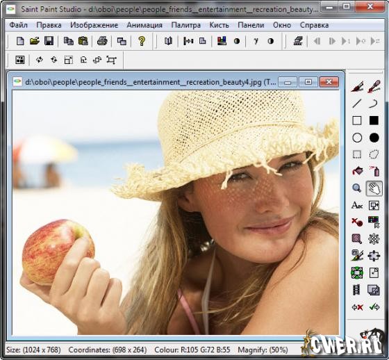 Saint Paint Studio - привлекательный и удобный графический редактор, который предлагает много специальных эффектов, чтобы улучшить вид изображений. Он поддерживает все обычные форматы файлов: BMP, GIF, JPEG, PNG, PCX, TGA и т.д. В окне предварительного просмотра можно увидеть результаты перед сохранением. Кроме того, имеется инструмент вставки текста, который позволяет отображать текст поверх картинки.