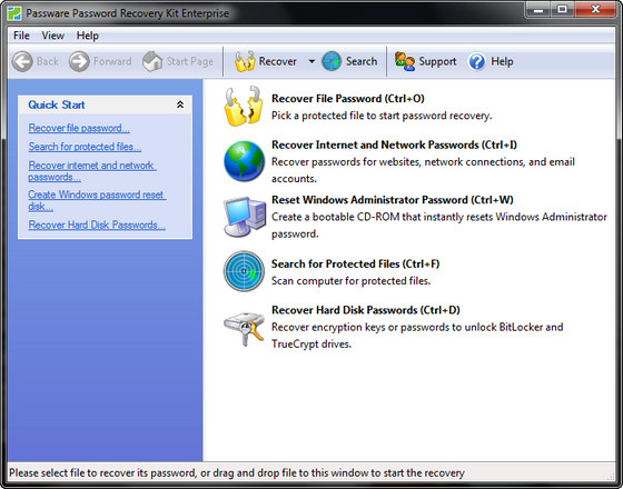 Passware Kit Enterprise - набор инструментов для подбора или определения паролей к файлам (более 100 видов), созданными самыми известными в мире программами: Office, Excel, Word, Windows XP/2000/NT, Access, Outlook, Outlook Express, Exchange, WinZip PKZip ZIP, WinRAR RAR, VBA Visual Basic modules, Internet Explorer/ EFS - Encrypted File System, FileMaker/ Acrobat, Quicken, QuickBooks, Lotus 1-2-3, Lotus Notes, Lotus, Organizer, Lotus WordPro, Quattro Pro, Backup, Project, MYOB, Peachtree, Paradox, ACT!, Mail, Schedule+, Money, WordPerfect и MS Office 2007, а также определения ключа Windows XP/2000/NT/7.