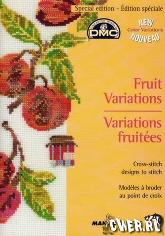 Буклет от французской фирмы DMC со схемами для вышивки фруктов: ананас и манго, виноград и арбуз, груши, яблоки, бананы.