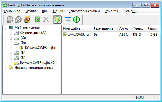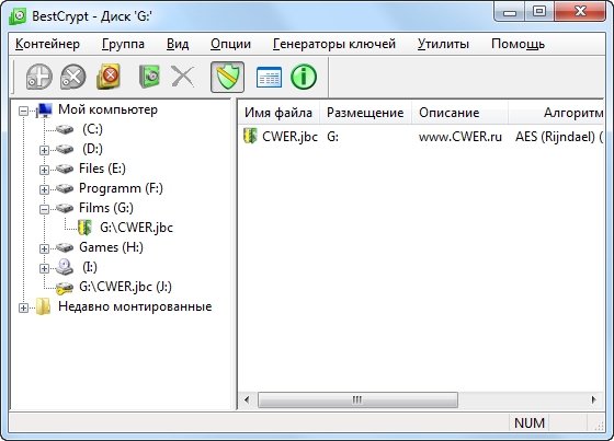 Jetico BestCrypt — программа для создания и поддержки зашифрованных виртуальных дисков. Программа позволяет шифровать данные несколькими алгоритмами шифрования, включая AES, Blowfish, Twofish, CAST и другими. Каждый алгоритм выполняется с максимально возможным размером ключа, определенного в спецификации алгоритма. Виртуальные диски появляются в системе как обычные локальные диски. Все системные и дисковые утилиты будут работать с ними обычным образом. Размер виртуального диска варьируется от нескольких мегабайт до сотен гигабайт, и вы можете создать любое количество виртуальных дисков. Зашифрованный файл-образ виртуального диска может быть скопирован на другие компьютеры.