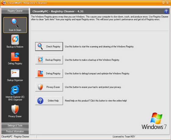 CleanMyPC Registry Cleaner сканирует системный реестр операционных систем Windows на предмет обнаружения и удаления некорректных, поврежденных или неработающих ссылок и записей. Данная процедура позволяет поддерживать работоспособность ОС на достаточно высоком уровне и избегать непредвиденных сбоев в работе ПК. Присутствует опция создания резервных копий реестра, так что вы всегда можете отменить все сделанные изменения и вернуться к наилучшей конфигурации. Также утилита позволяет с легкостью управлять программами и BHO (Browser Helping Object), автоматически загружаемыми в момент запуска Windows и Internet Explorer.