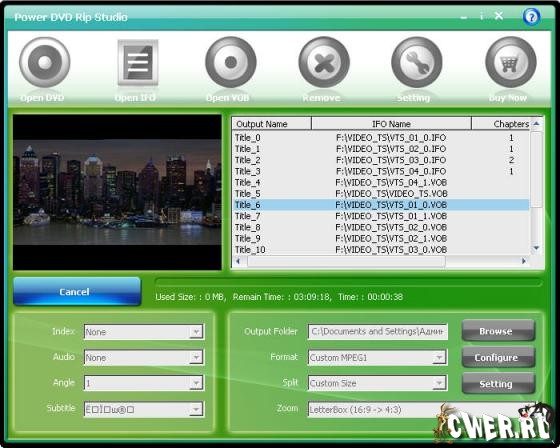 Power DVD Rip Studio – это мощной инструмент цифрового копирования DVD видеодисков в следующие форматы: AVI, MPEG, WMV, WAV и SVCD… Вы легко можете скопировать ваш DVD в ваш iPod, PSP, iPhone, Zune, и на ваш мобильный телефон. Power DVD Rip Studio поддерживает разные виды конверсии, вы можете выделить все треки с DVD и программа самостоятельно один за другим скодирует их в нужный вам формат, после чего вы сможете наслаждаться цифровым видео и аудио на своём портативном устройстве в любом удобном для месте.