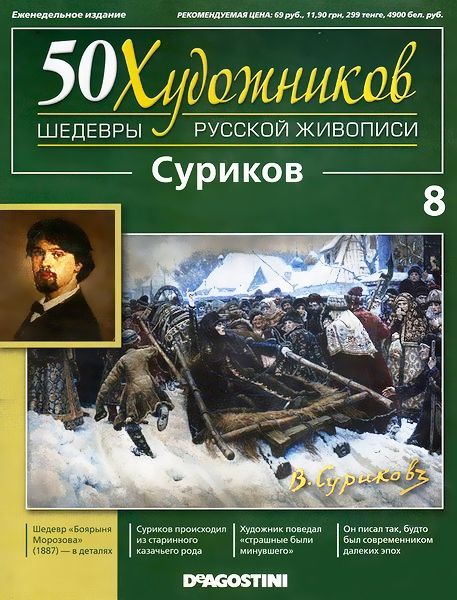 DeAgostini представляет коллекционное издание, рассказывающее о 50 великих русских художниках. Суриков, выходец из суровой Сибири, быстро выдвинулся на первые роли в русском изобразительном искусстве конца 19-го века, но никогда не терял связи со своей "малой родиной", черпая в детских впечатлениях сюжеты своих известнейших картин.