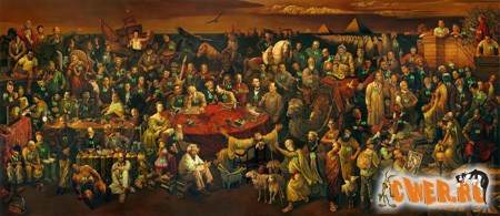 На картине сотня, вернее сто один великий человек. Тут и писатели и художники, артисты и диктаторы... Одних, мы продолжаем любить, других - ненавидеть. Но каждый из них оставил след в истории Человечества.