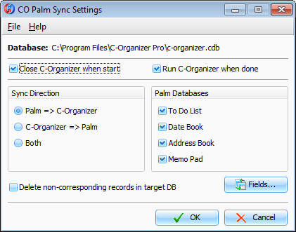 Пользователи C-Organizer Pro имеют возможность не только пользоваться этим органайзером на своем компьютере но и синхронизировать Календарь, Задачи, Адресную книгу и Заметки с Palm совместимыми устройствами. Для этого нами была разработана утилита синхронизации CO Palm Sync. Пользуясь этой программой Вы можете легко синхронизировать информацию в C-Organizer Pro с информацией, хранящейся на Вашем устройстве.