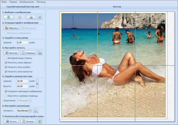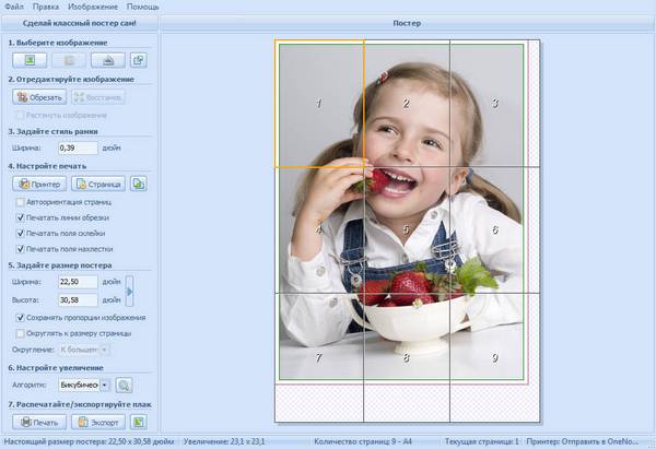 Poster Printer - программа для создания и печати больших плакатов, знаков, рекламных объявлений без использования специальных плоттеров просто на стандартном принтере. Для создания плаката может быть использован любой рисунок, изображение, документ Microsoft Word, таблица или график Excel. Также возможна печать плаката с цифровой фото камеры или со сканера. Удобный интерфейс и простота использования позволяют за считанные минуты создать высококачественный огромный плакат. Просто выбери рисунок и размеры и запусти на печать.