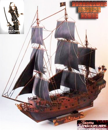 Вам понадобится лишь тюбик клея, ножницы или острый нож, чтобы превратить листы с выкройками в красивую игрушку, и не просто игрушку, а самый настоящий пиратский корабль из потрясающей квадрологии фильма Пираты Карибского моря!