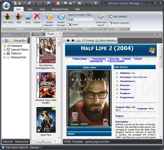 eXtreme Games Manager - это менеджжер коллекций игр. Программа сможет загрузить информацию о играх из многих специализированных стайтов, для этого Вам понадобиться только указать название игры либо указать отсканированный штрих код ISBN.