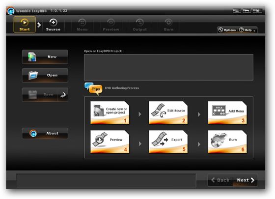 Womble EasyDVD - это инструмент для простого и быстрого создания DVD. Создавайте свои собственные DVD всего парой щелчков мышью. Womble EasyDVD соединяет в себе продуманную технологию ренедеринга MPEG-2 видео и гибкую поддержку шаблонов DVD меню. Программа подойдет как профессионалам, так и новичкам.