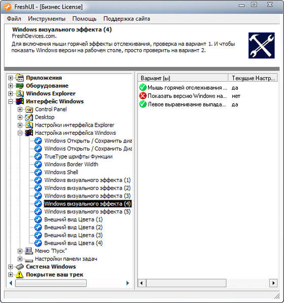 FreshUI - утилита, при помощи которой вы получите доступ к большому числу параметров операционных систем Windows, разбитым на несколько категорий — интерфейс, система, аппаратная часть, приложения (Windows) и пользователи (среда и правила). Включает сотни полезных, скрытых параметров настройки. Позволяет редактировать скрытые опции для стандартных программ (Windows Media Player, Outlook Express), может ограничивать доступ к различным частям операционной системы (панель управления, командная строка), редактировать контекстные меню проводника и т.д.