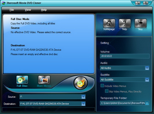 3herosoft Movie DVD Cloner - программное обеспечение, которое поможет вам копировать видео DVD9 и DVD5, поддерживает копирование DVD 1:1 с прожигом на DVD-диски. Кроме того, программа может сжимать DVD-9 (двухслойный DVD) на один DVD-5 диск. Также позволяет удалить DVD меню, субтитры, аудио и языковые файлы. Программа может клонировать DVD с любым региональным кодом.