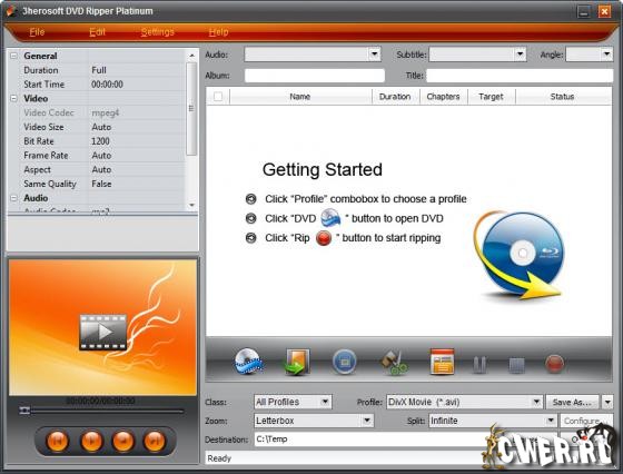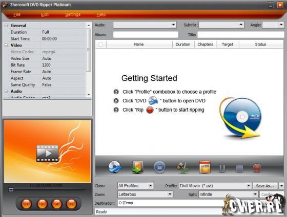 3herosoft DVD Ripper Platinum - конвертер между популярными видео файлами и граббер видео DVD в форматы для мобильных устройств, поддержка WMV, AVI, DivX, MPEG, MP4, H.264/MPEG-4 AVC, RM, MOV, XviD, FLV, 3GP, VOB (DVD), DAT (VCD, SVCD) форматов, извлечение аудио из DVD в AC3, M4A, MP3, WMA, WAV, AAC форматы, поддержка iPod, iPhone, Apple TV, Xbox 360, Zune, PSP, Pocket PC, Creative Zen, Archos и других, выбор файлов для извлечения, выбор сегмента (ролика) из видео, настройка параметров сохранения, пакетный режим конвертирования, предварительный просмотр в встроенном проигрывателе, нормализация аудио, создание и редактирование ID3v1 и ID3v2 тэгов.